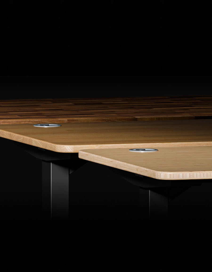 Bygget af massivt Valnød, Eg eller Bambus - hvert især håndvalgt for dens naturlige skønhed og unikke karakter. Tyk nok til at føles premium, tynd nok til at være moderne.