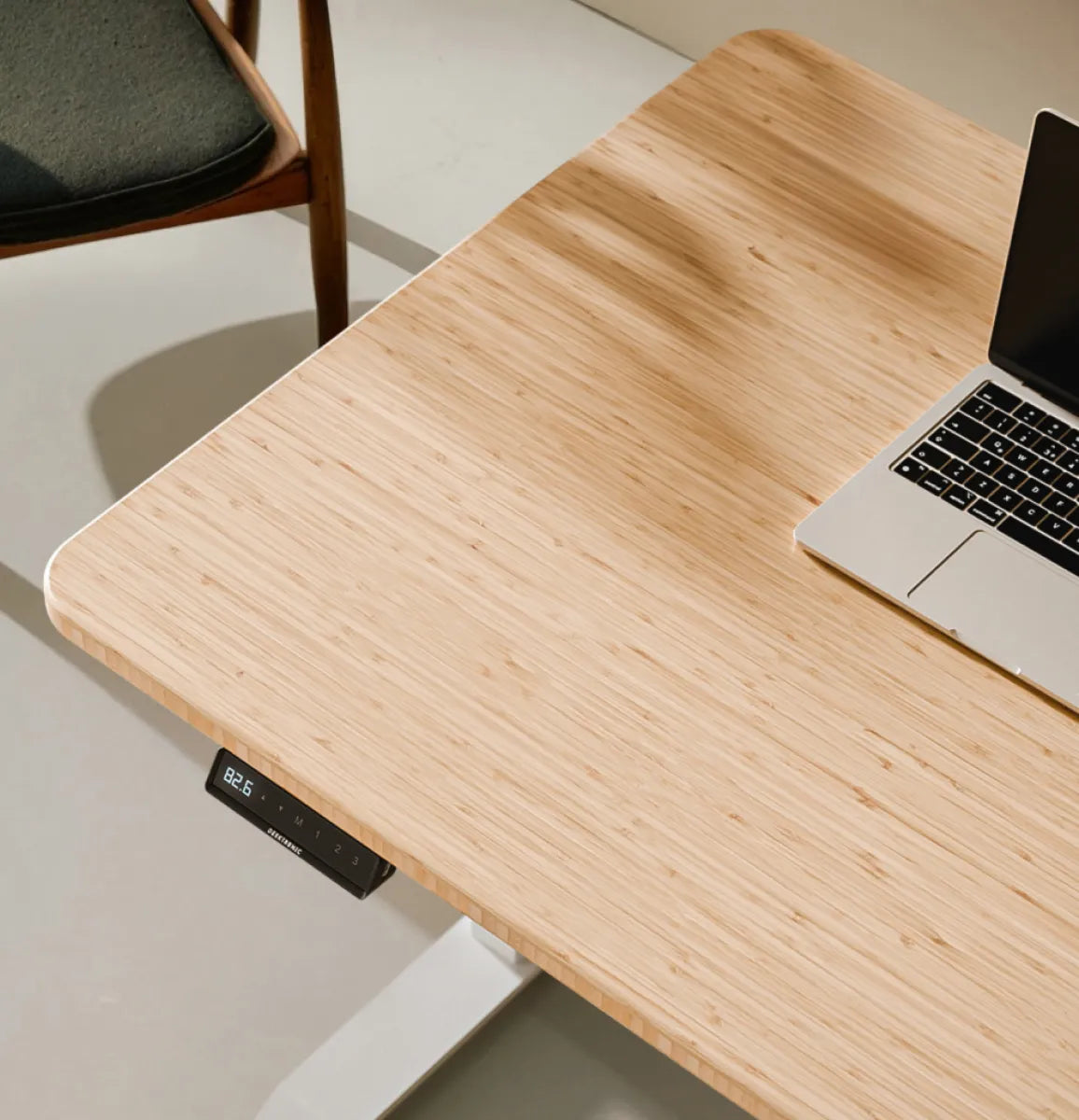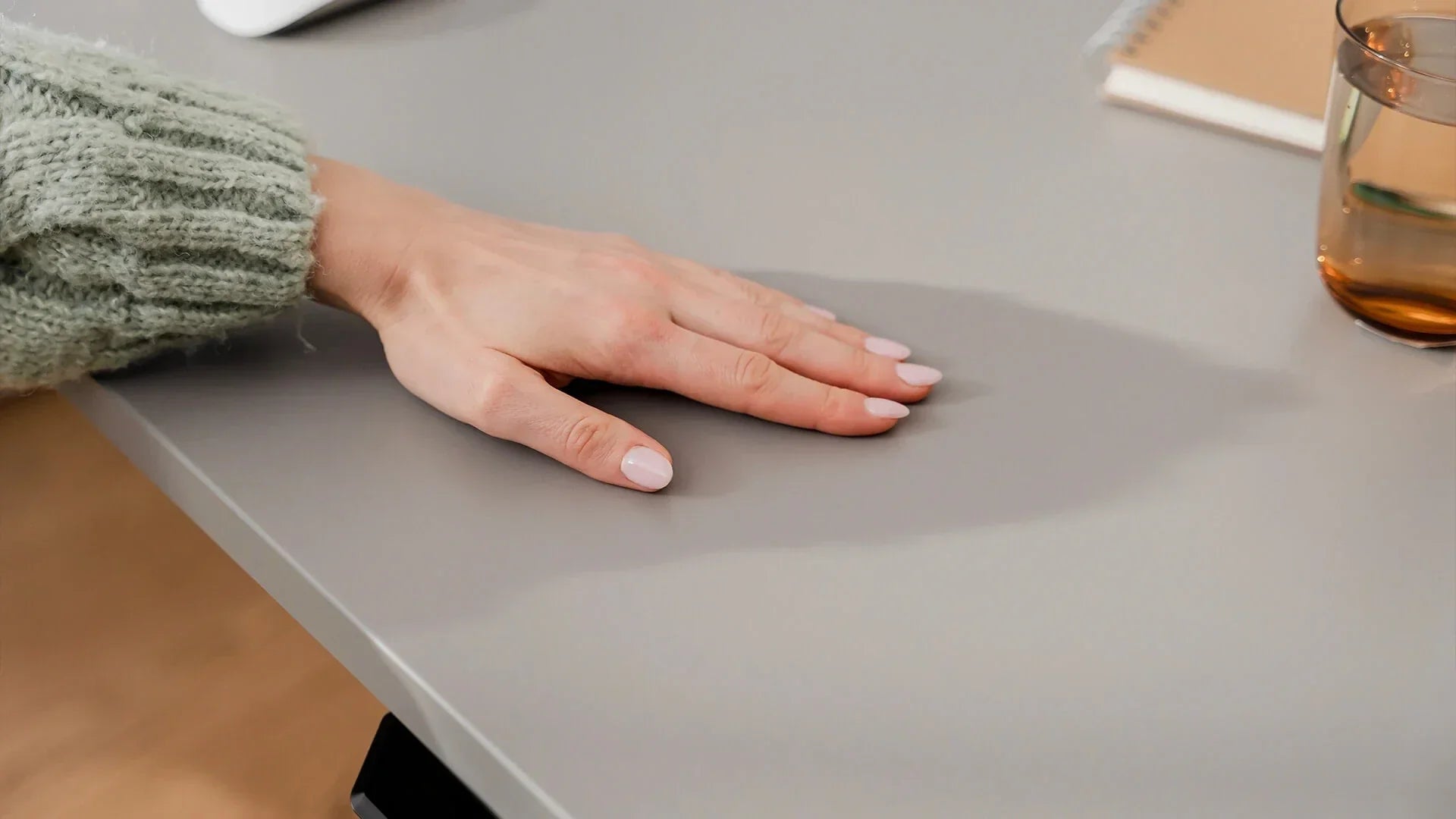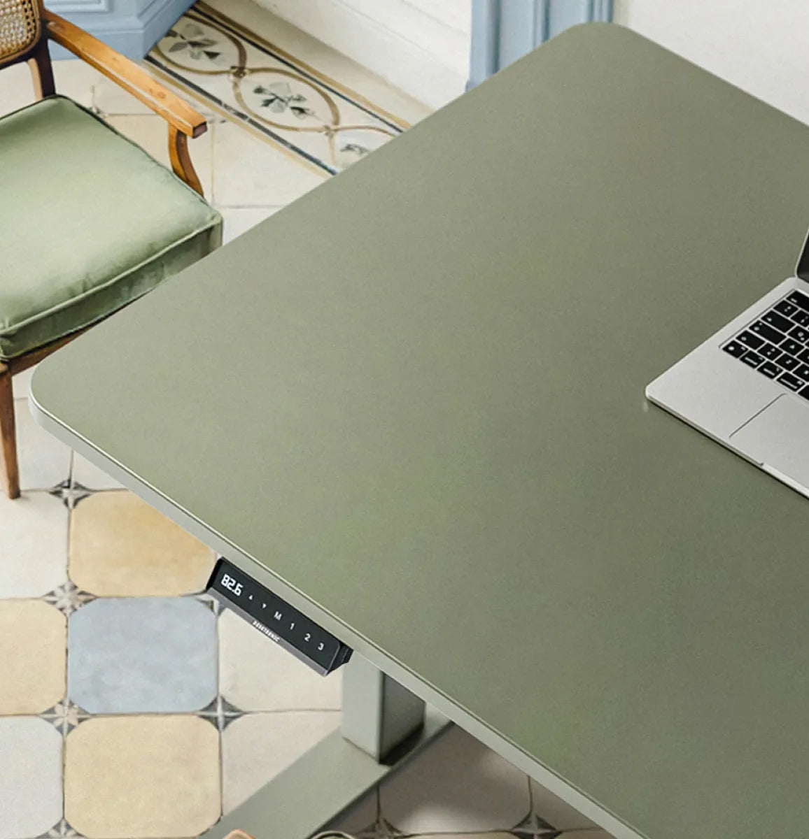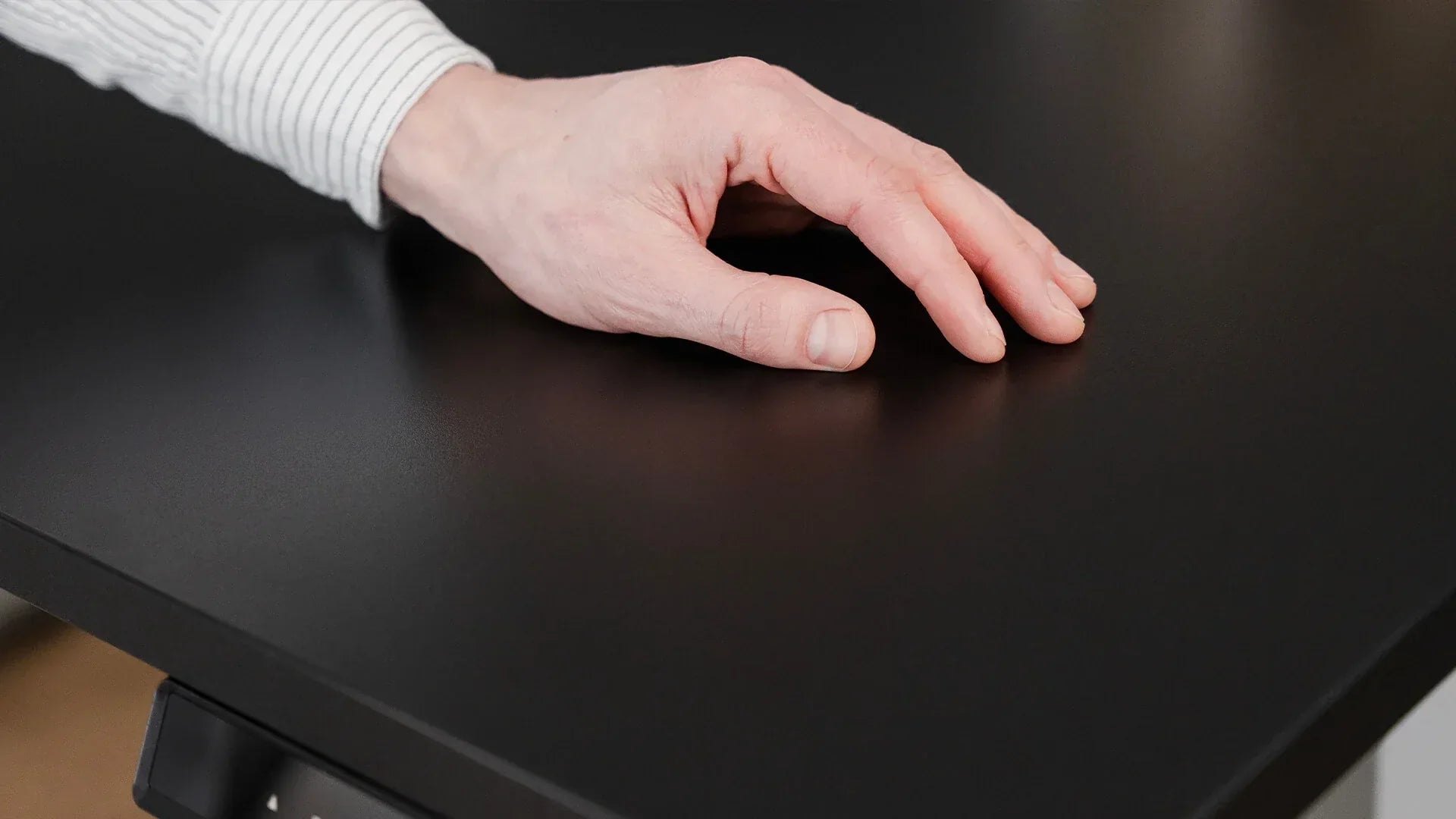 HomeOne hæve-/sænkebordet har robuste ben af rustfrit stål, kombineret med en 25 mm tyk bordplade lavet af højkvalitets melaminbelagt spånplade, produceret og fremstillet i Europa. Hver bordplade er fremstillet ved brug af certificeret spånplade med melaminharpiks-belægning, kendt for dens holdbarhed og standard brug i mange kontorer rundt om i verden.