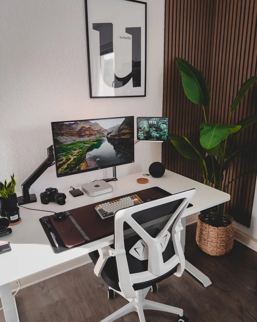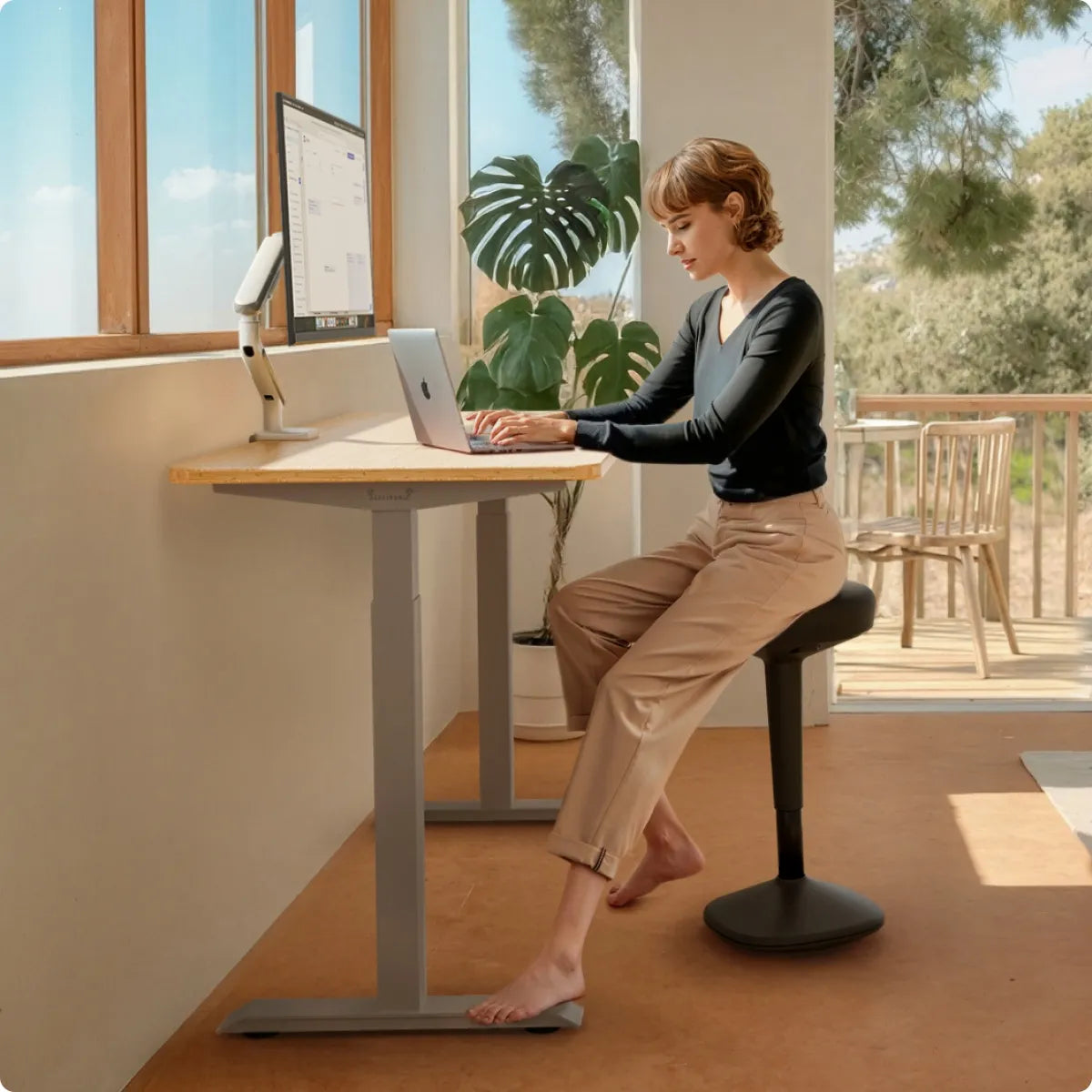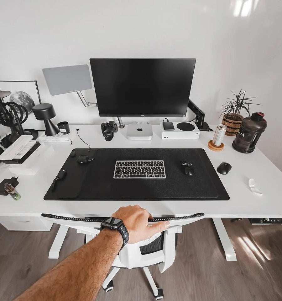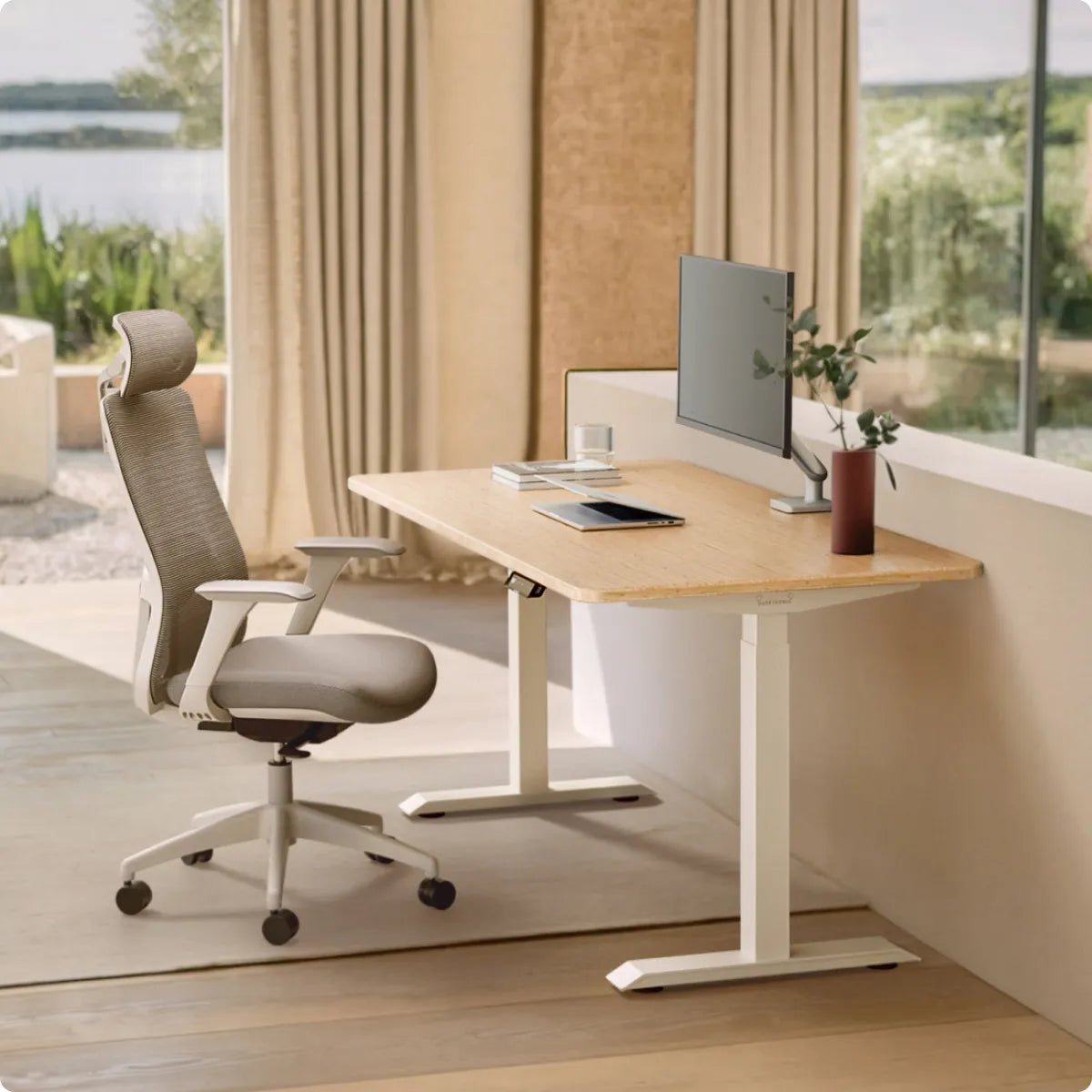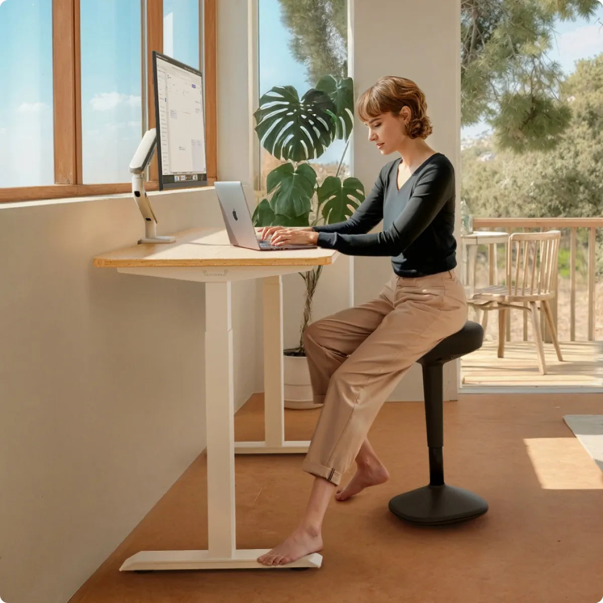 Den ideelle skrivebordshøjde varierer fra person til person, men en generel tommelfingerregel er, at dit skrivebord bør være i albuehøjde, når du sidder ned, og toppen af din skærm bør være i øjenniveau for at undgå spændinger. Når du står op, bør dit skrivebord være på linje med dine bøjede albuer.