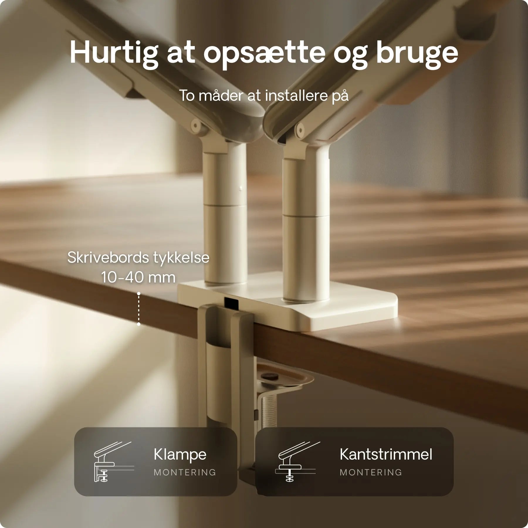 Takket være den medfølgende vejledning og alt nødvendigt tilbehør er vores skærm holdere til skriveborde lette at installere - selv for teenagere. Installationen kan gennemføres inden for 10 minutter.