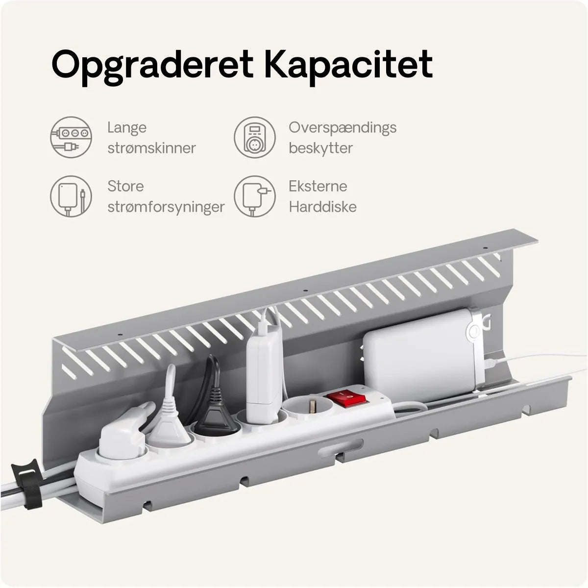 Kabelbakken værdsættes for dens robuste stålkonstruktion, generøse kapacitet og smarte udskæringer der simplificerer din kabelhåndtering. Anmeldere fremhæver det distraktions-frie look den bringer, mens den holder strips og adaptere sikkert på plads. Bygget til at holde og let at installere, med en 2-årig garanti er den en smart løsning for et stilrent setup.