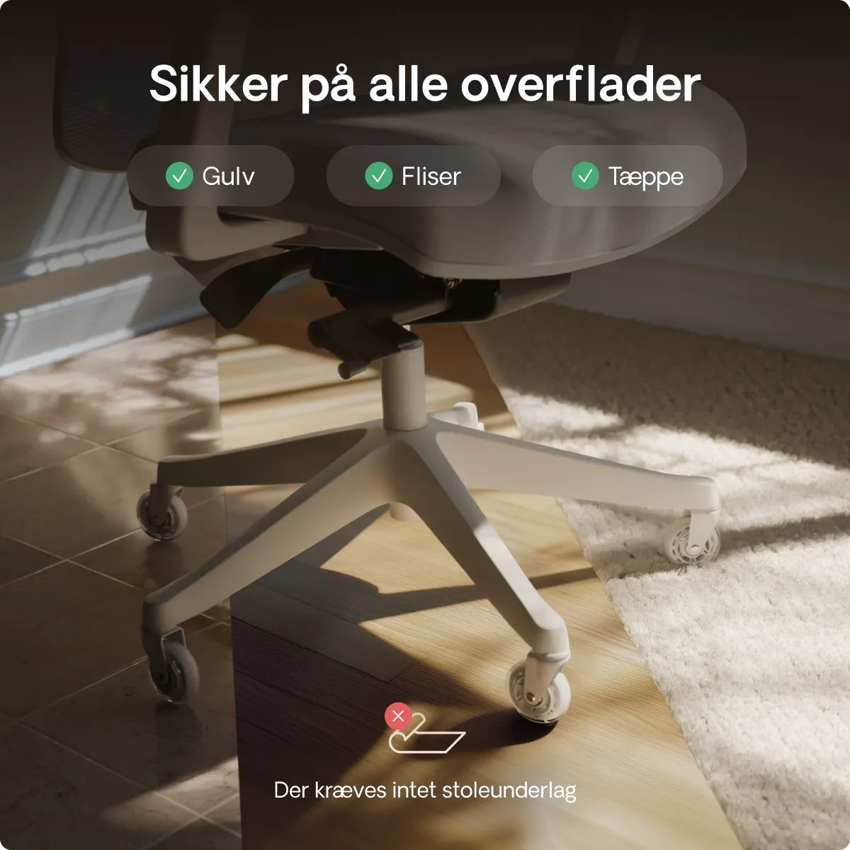 Det er på høje tid til, at du dropper dit stoleunderlag! Vores stolehjul er lavet til at rulle glat på alle overflader, uanset om det er trægulv, tæpper, fliser eller enhver anden type gulvbelægning. De er helt fri for ridser, så du beskytter dit gulv og sparer penge. Det er en win-win situation.