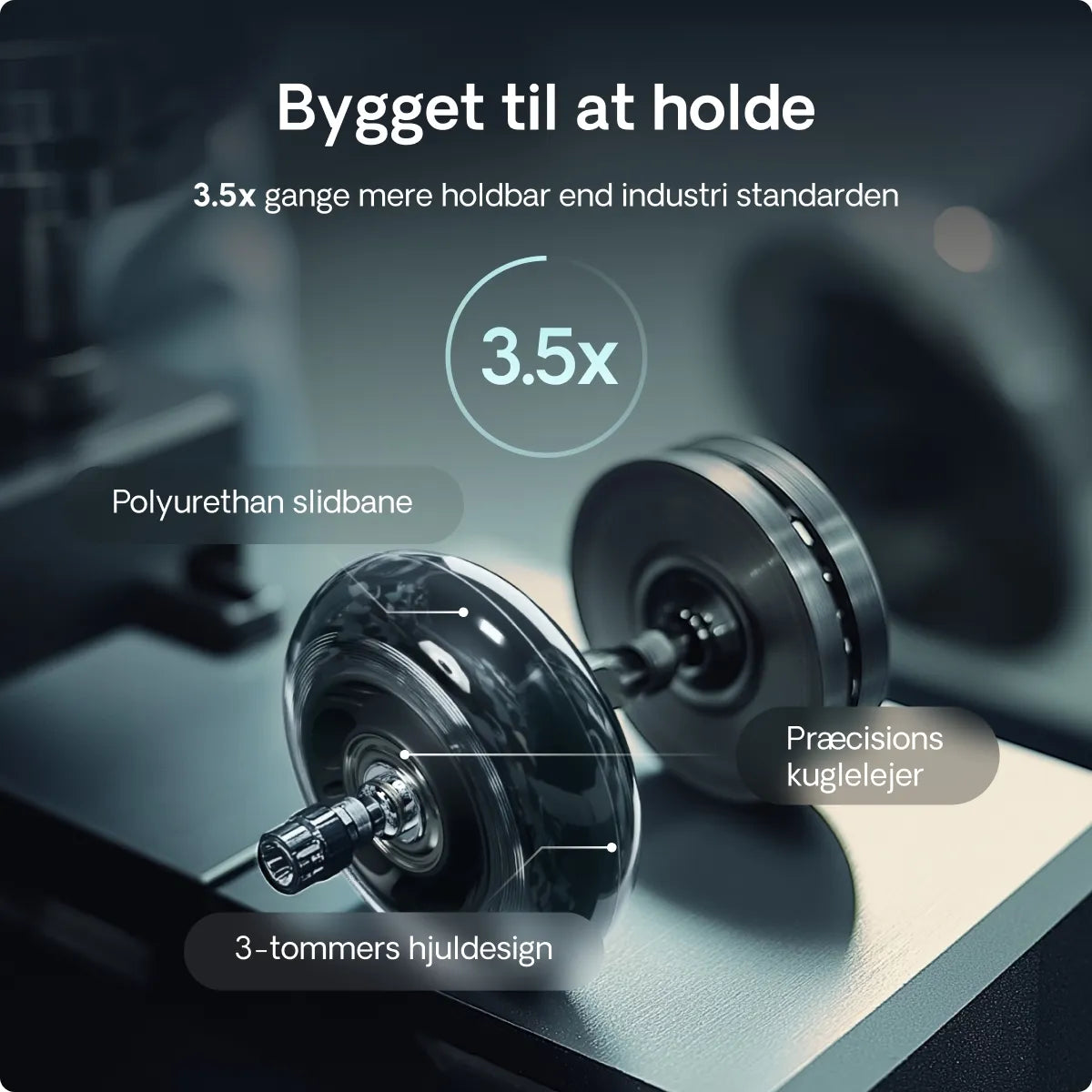 Rul rundt som en varm kniv gennem smør. Takket være 360 graders rotation og højkvalitets gummimateriale sikrer vores hjul, at du bevæger dig over gulvet så lydløst som muligt.
