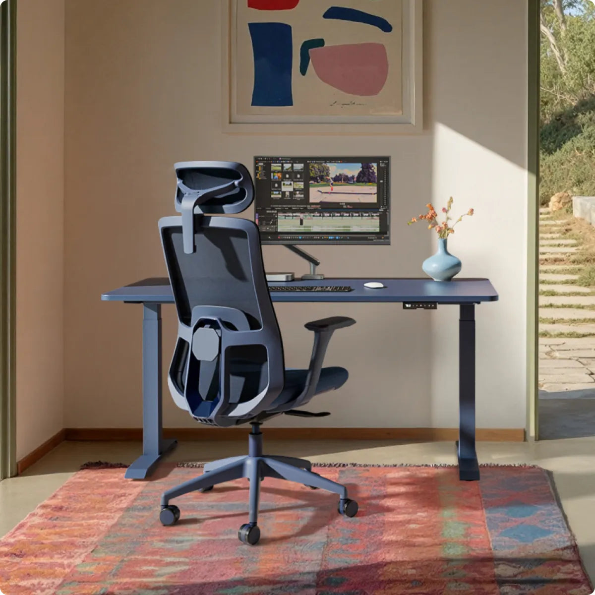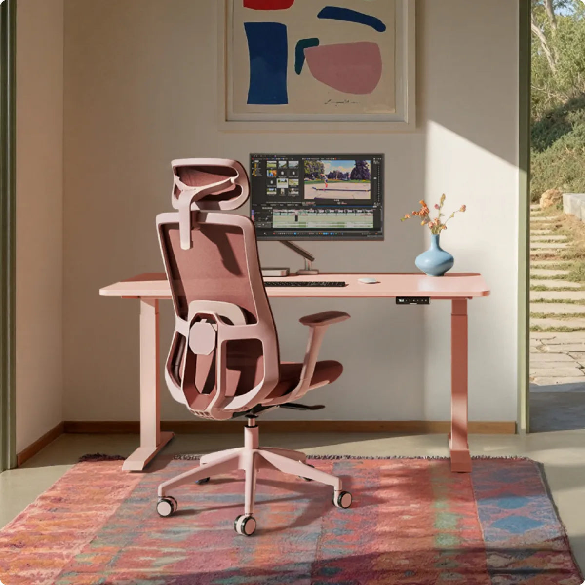 Vi bruger elastisk mesh med små huller, der passer til kropsformen, hvilket giver optimal støtte i forskellige stillinger uden behov for at justere ryghøjden for komfort. Mesh materialet afbalancerer trykaflastning og temperatur og giver en åndbar fornemmelse. Sædet er lavet af specielt dannet skum med høj densitet, som fordeler trykket jævnt, hvilket i høj grad reducerer belastningen på dine lår under længere siddende sessioner.