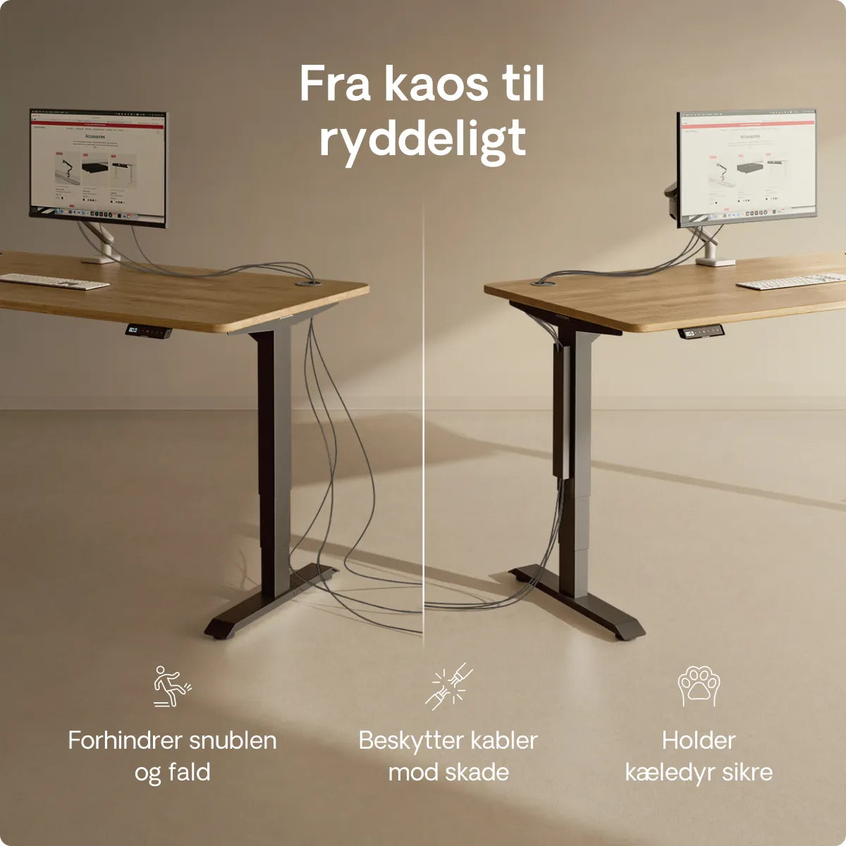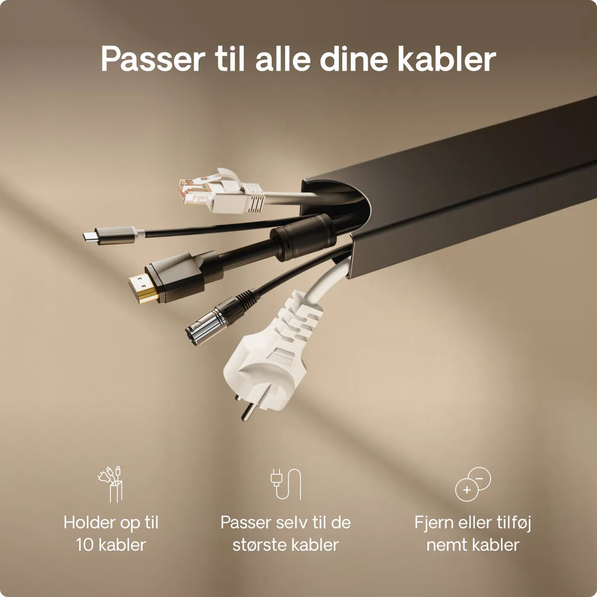Ja. Den magnetiske kabelkanal er designet til borde med metalramme. Den monteres med magneter, så så længe dit bord har flade metalsektioner vil den passe uden problemer - ingen boring eller skruer nødvendige.