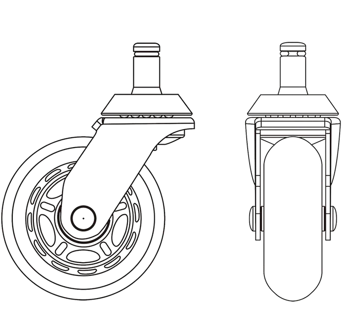 Desktronics styrehjul er lavet af polyurethan i høj kvalitet, og er blødt på alle overflader. Beslaget er lavet af slidstærkt kulstofstål for at sikre produktets levetid.